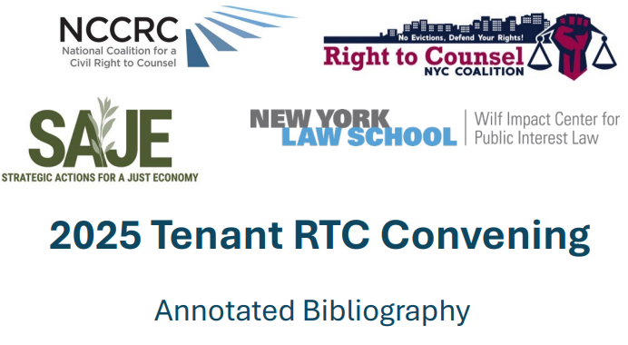 The 2025 Tenant RTC Convening | Annotated Bibliography was created by the students and research assistants in the New York Law School Housing Rights Clinic (2024-2025). Many thanks for their work!