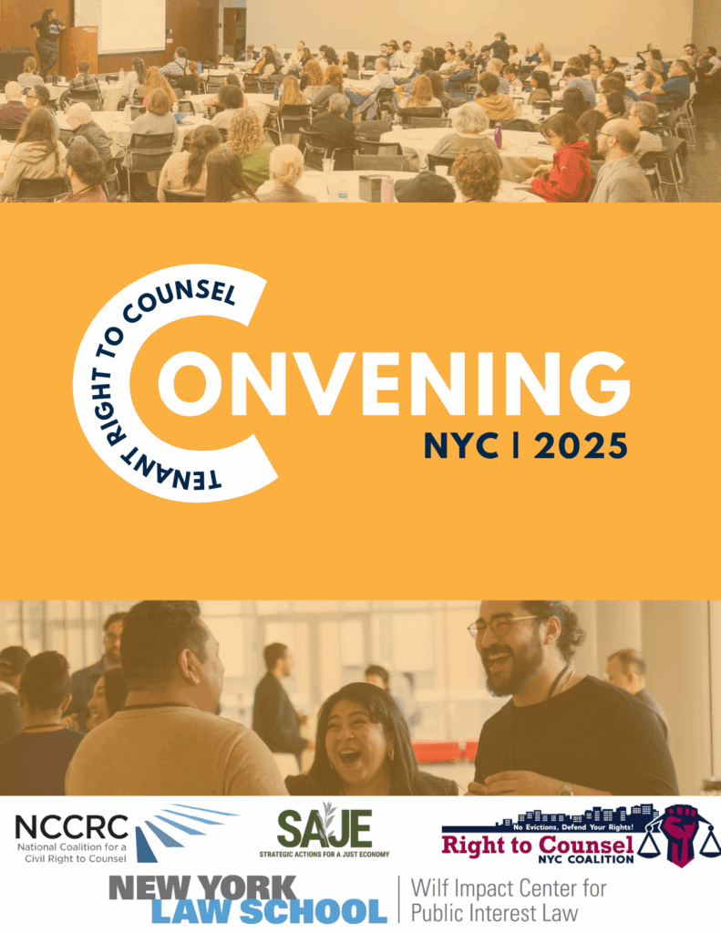 On April 24 and 25, 2025 at New York Law School the National Coalition for a Civil Right to Counsel (NCCRC), a project of the Public Justice Center, Right to Counsel NYC Coalition (RTCNYC), Strategic Actions for a Just Economy (SAJE), and New York Law School’s Wilf Impact Center for Public Interest Law co-hosted the 2025 Tenant Right to Counsel Convening.
